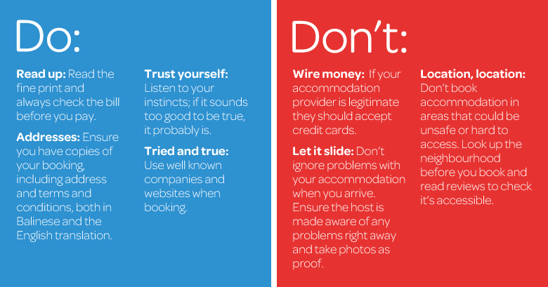 Bali offers a great range of accommodation, from inexpensive hostels to first-class resorts and luxury villas. As with most things in life though, you get what you pay for and if you don’t do your research, you may be disappointed.
